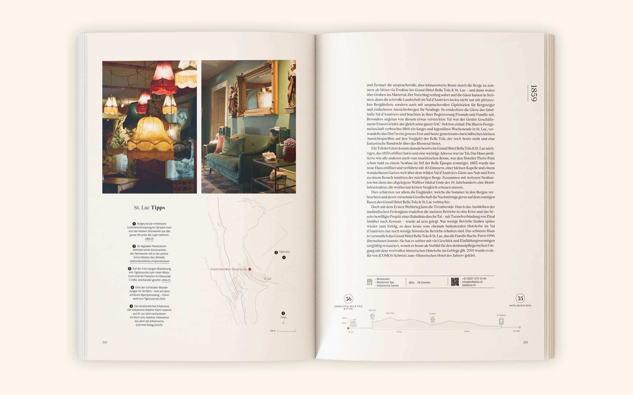 Faszinierende Details und Episoden aus den Hotelgeschichten machen die Schweizer Landes- und Tourismusgeschichte erlebbar. Abwechslungsreiche Wanderungen und touristische Reiserouten verbinden die Hotels, damit man auf einer genussvollen Reise sämtliche Häuser besuchen kann.