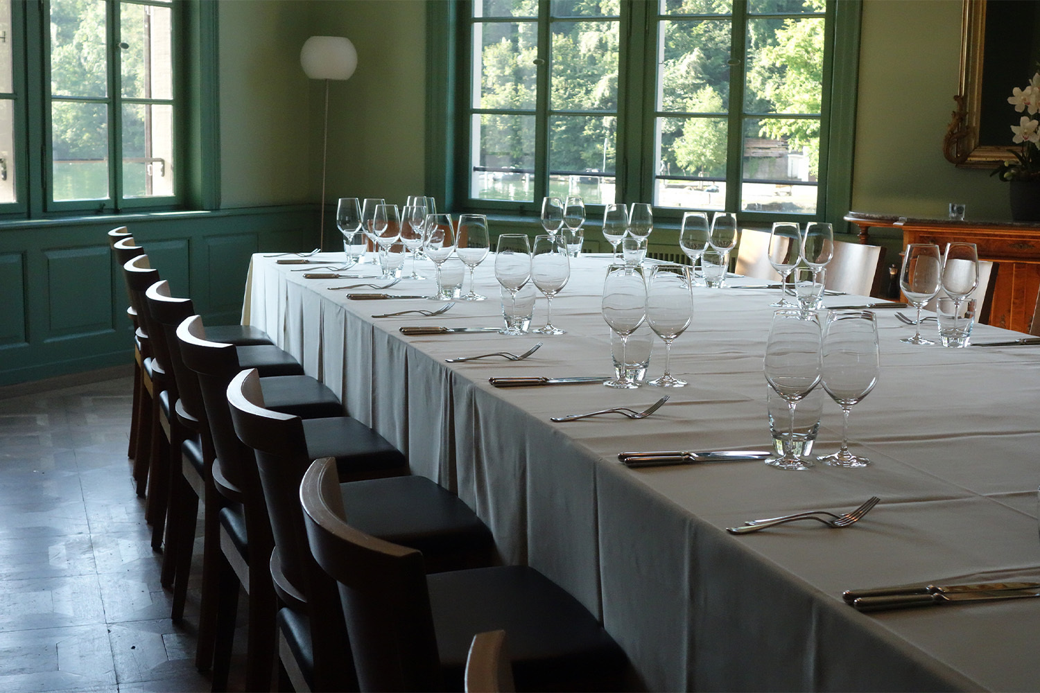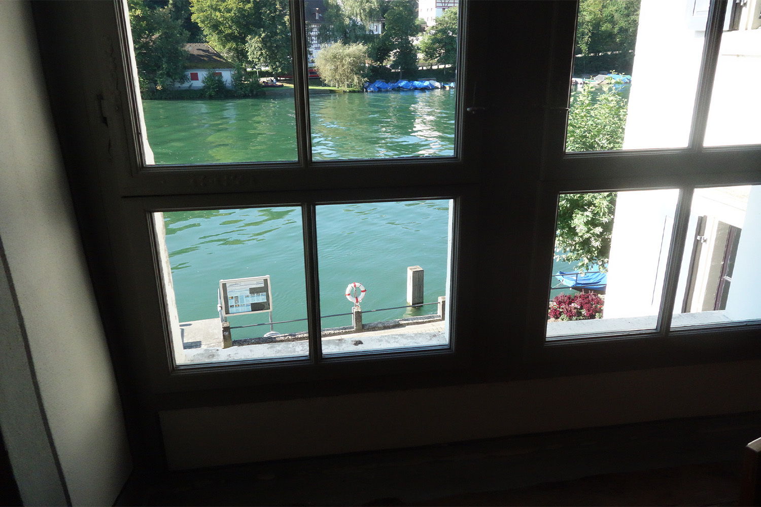 Bei einem Apero unter den Platanen wurde mir ganz philosophisch zumute. Der träge dahinfliessende Rhein und das alte Hotel erinnerten mich daran, dass die Zeit uns langsam wie Honig durch die Geschichte trägt. Die Wirtsleute hatten draussen für mich aufgedeckt. Spätsommer. Es war angenehm warm. Die Menschen – dem Dialekt nach viele aus Eglisau oder der weiteren Umgebung - freuten sich, nach einem verregneten Sommer wieder einmal draussen sitzen zu können. Das Essen war so fein, dass ich gern noch länger geblieben wäre, um die weiteren Fantasien aus der Küche kosten zu können – auch hier wieder mit Weinen aus der Region. Ich verlängerte den Abend mit einem Glas Süsswein und dem Gedanken, dass der Rhein möglicherweise schon hier etwas vom Gold mit sich führt, dass ihm die Sage und Wagners Opern angedichtet haben. Dann durchstreifte ich in Gedanken nochmals die drei Hotels meiner Reise, die bei allen Unterschieden eines gemeinsam haben: Sie stünden mir und der Öffentlichkeit nicht zur Verfügung, wenn sich nicht private Geldgeber, die Denkmalpflege und staatliche Stellen zusammengetan hätten, um die alten, baufälligen Häuser wieder zum Funkeln zu bringen.